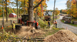 On a Georgian Bay or Simcoe County property being cleared ahead of a build, stump removal is not a standalone service that gets scheduled after clearing is complete. It is part of the clearing scope — and the most efficient time to address it is when clearing equipment is already on site, access is open, and the full lot layout is visible.
